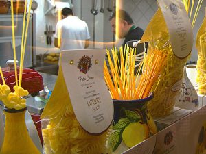 Today, of those hundreds of pasta factories, only a dozen remain. After decades of geopolitical wars, agricultural setbacks and evolution of global nutrition trends, the historical “maccheronari” struggle to preserve the precious art of traditional pasta making against corporate giants. The family business Pasta Cuomo hold the fort with their small artisan factory still located in the heart of Gragnano, along the street called Via Roma (Street of the Pasta Makers). Their name is well documented in the archives of the Kingdom for their immense contribution to the industry and, apparently, the King ‘s favourite brand! Seven generations of dedicated craftsmen (and women) which stood out from the rest for their innovation and vision; the process of bronze drawn (extrusion) and drying with natural occurring air flow (sea breeze), made their pasta unique and of the highest quality. The reins of the family business are now in the hands of Amelia and Alfonzo. Their challenge is to connect the family trade with the high-end restaurants worldwide with their limited batches of handmade pasta. Only two ingredients: water and flour! When I asked where the two ingredients were historically sourced, Amelia pointed the finger out of the factory window and said “One kilometre walk up the hill that way!”